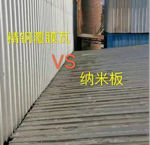 上圖是不良正能量网站覆膜瓦和納米板使用半年後的對比,如圖所示:不良正能量网站覆膜瓦完好如初,但是納米板表麵已經開始脫皮、生鏽和腐蝕。
